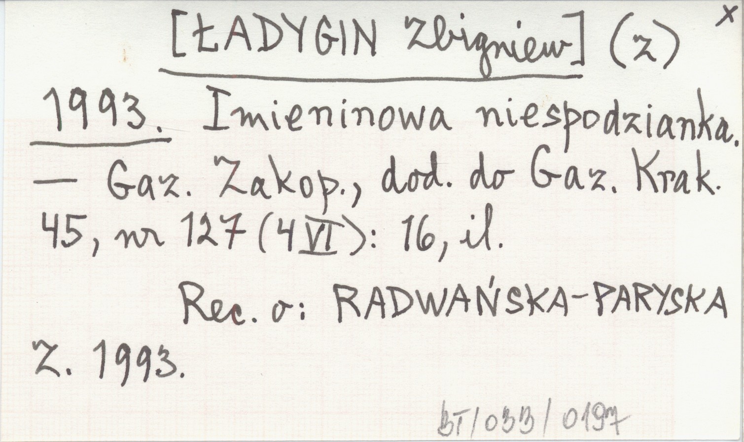 Gazeta Zakopiańska, dod. Gazeta Krakowska, 45, nr 127 (4 VI): 16, il. Rec. o: RADWAŃSKA-PARYSKA Z. 1993