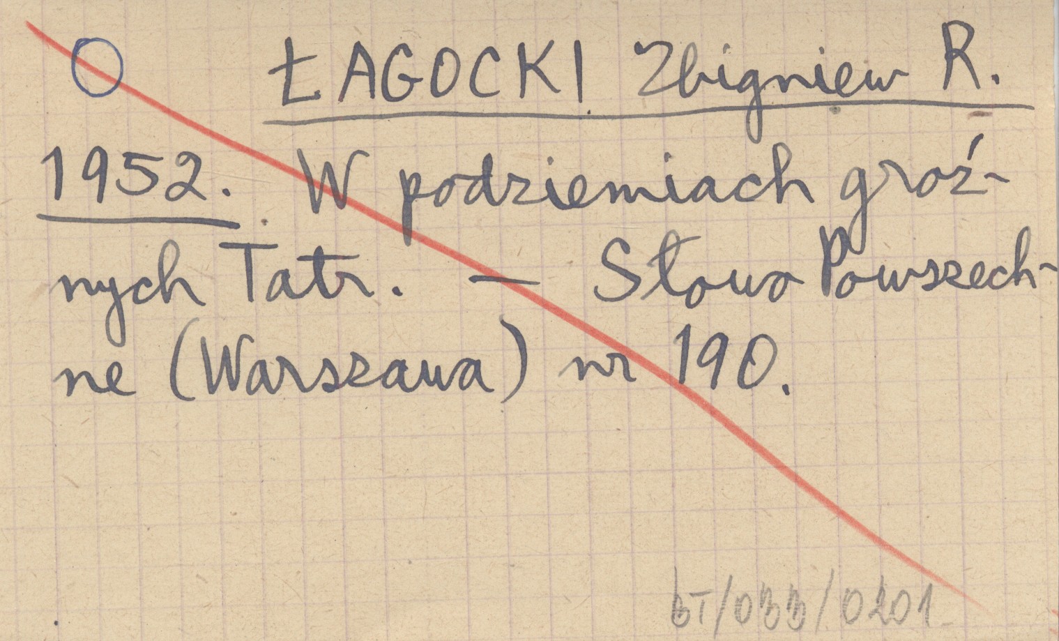 ŁAGOCKI Zbigniew R. 1952 W podziemiach groźnych Tatr.