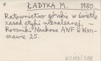 ŁADYKA M. 1980... Ratownictwo górskie w świetle zasad etyki niezależnej.