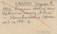 ŁAGOCKI Zbigniew 1988 Ewa Franczak i Stefan Okołowicz: Przeciw nicości. Fotografie Stanisława Ignacego Witkiewicza. Kraków 1986.