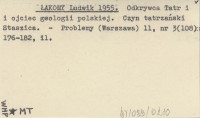 ŁAKOMY Ludwik 1955 Odkrywca Tatr i i ojciec geologii polskiej. Czyn tatrzański Staszica.