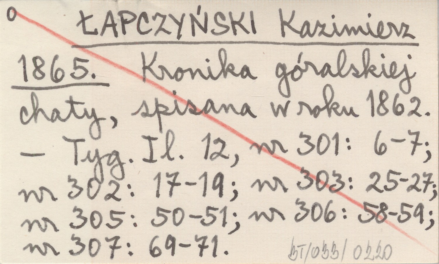 ŁAPCZYŃSKI Kazimierz 1865 Kronika góralskiej chaty, spisana w roku 1862.