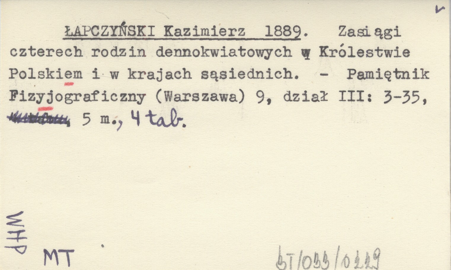 ŁAPCZYŃSKI Kazimierz 1889 Zasiągi czterech rodzin dennokwiatowych w Królestwie Polskiem i w krajach sąsiednich.