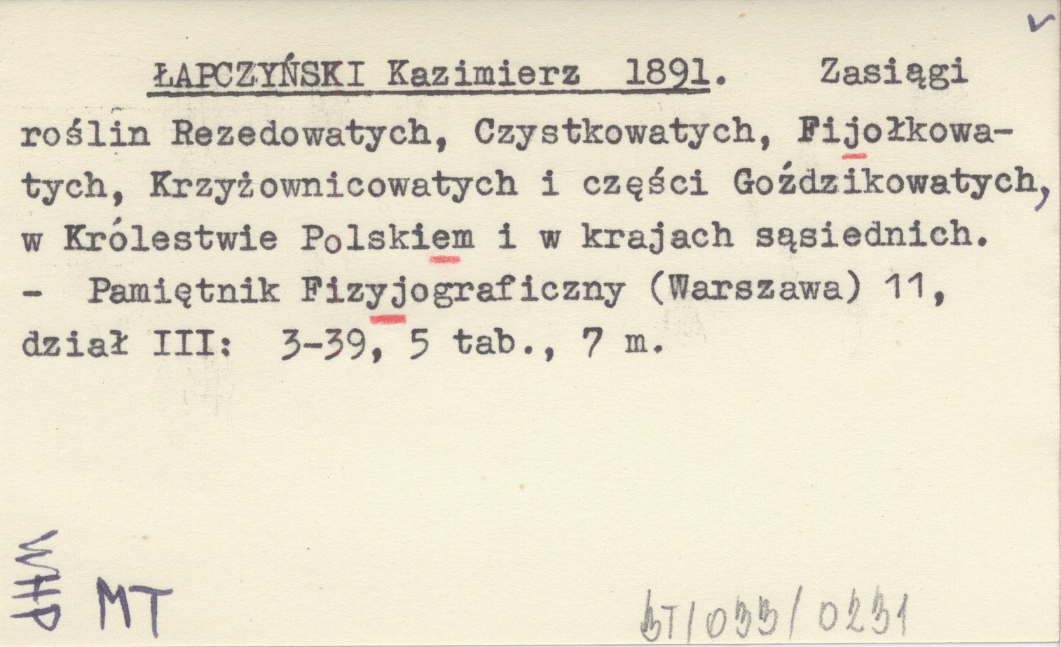 ŁAPCZYŃSKI Kazimierz 1891 Zasiągi roślin Rezedowatych, Czystkowatych, Fijołkowatych, Krzyżownicowatych i części Goździkowatych, w Królestwie Polskiem i w krajach sąsiednich.