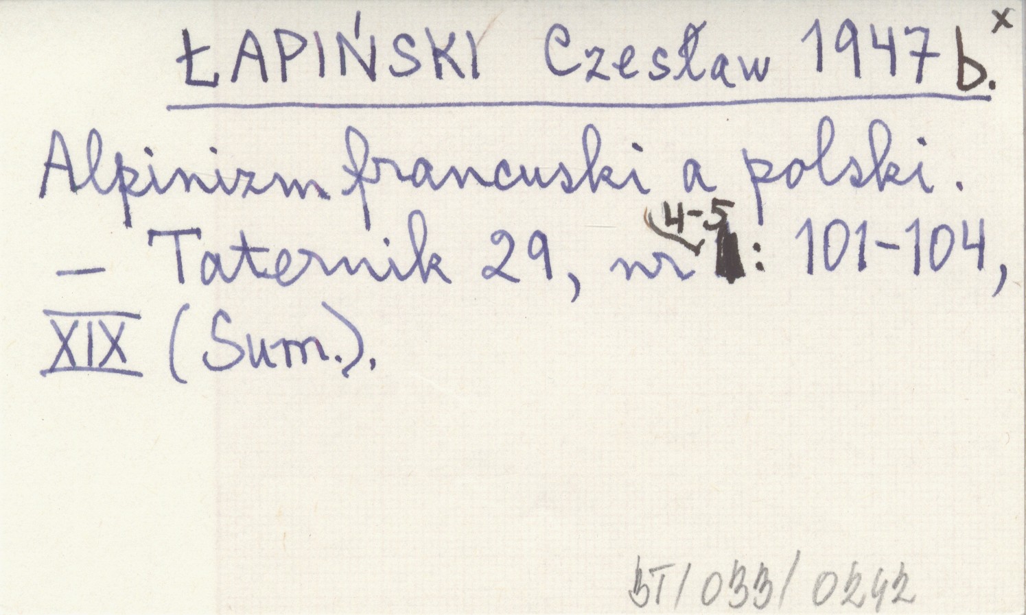 ŁAPIŃSKI Czesław 1947 b Alpinizm francuski a polski.