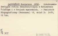 ŁAPCZYŃSKI Kazimierz 1892 Dokończenie Zasiągów roślin dennokwiatowych w Królestwie Polskiem i w krajach sąsiednich.