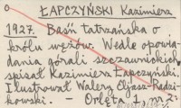 ŁAPCZYŃSKI Kazimierz 1927 Baśń tatrzańska o królu wężów. Wedle opowiadania górali szczawnickich spisał Kazimierz Łapczyński. Ilustrował Walery Eljasz-Radzikowski.