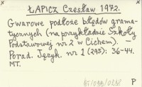 ŁAPICZ Czesław 1972 Gwarowe podłoże błędów gramatycznych (na przykładzie Szkoły Podstawowej nr 2 w Cichem).