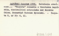 ŁAPIŃSKI Czesław 1959 Założenia odwrócone... "Turysta" rozmawia z Czesławem Łapińskim, kierownikiem schroniska nad Morskim Okiem. Rozmawiał Tadeusz Rycerski.