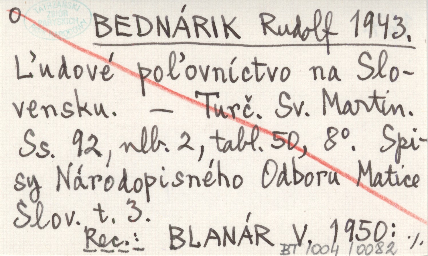 BEDNÁRIK Rudolf 1943 Ąudové poµovníctvo na Slovensku.