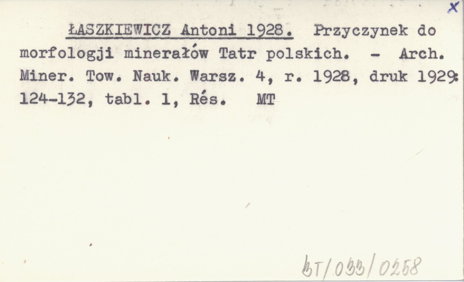 ŁASZKIEWICZ Antoni 1928 Przyczynek do morfologji minerałów Tatr polskich.