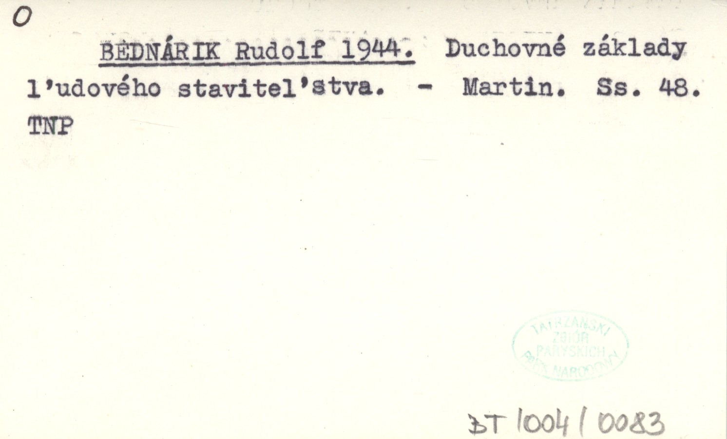 BEDNÁRIK Rudolf 1944 Duchovné základy ľudového staviteľstva.