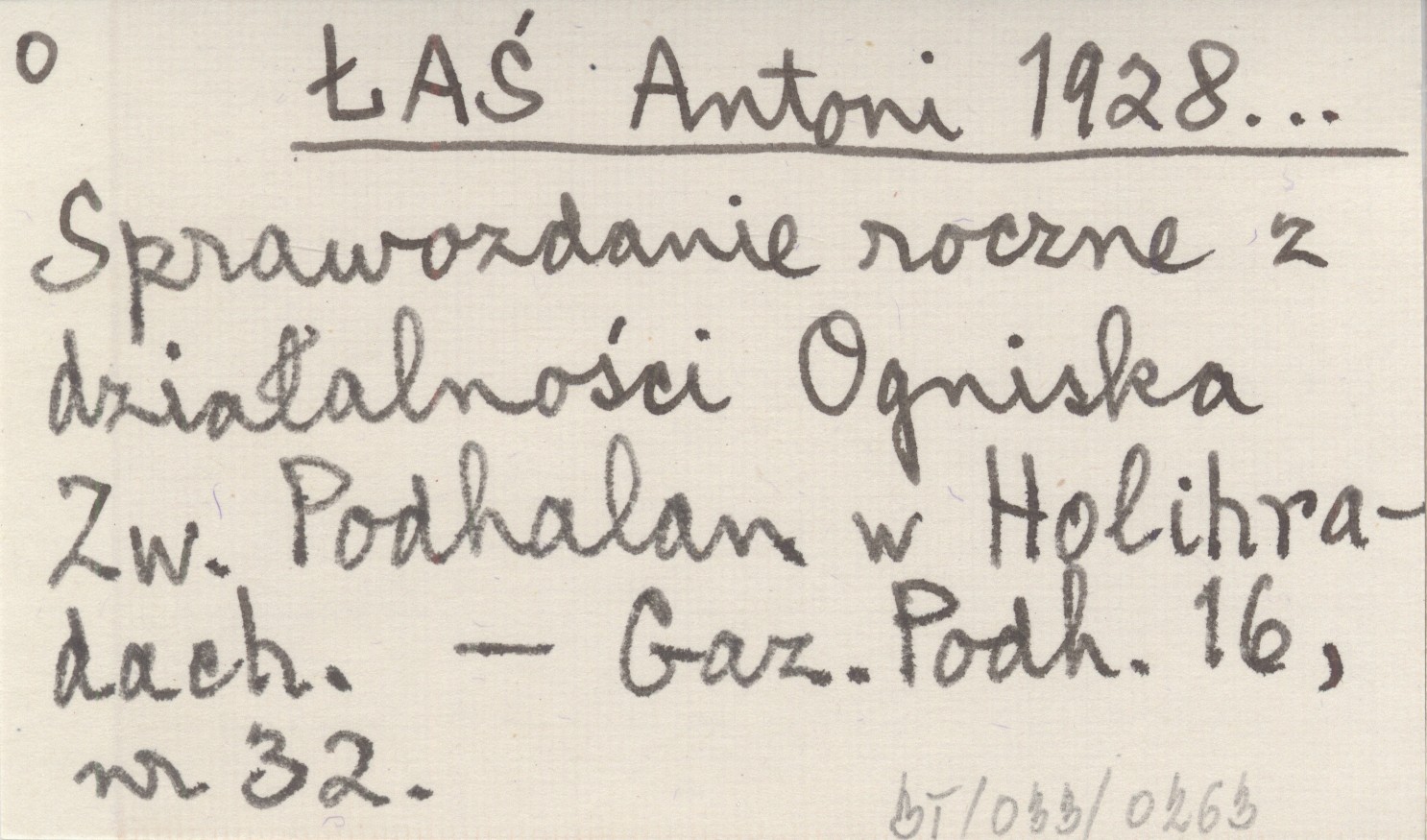 ŁAŚ Antoni 1928... Sprawozdanie roczne z działalności Ogniska Zw. Podhalan w Holihradach.
