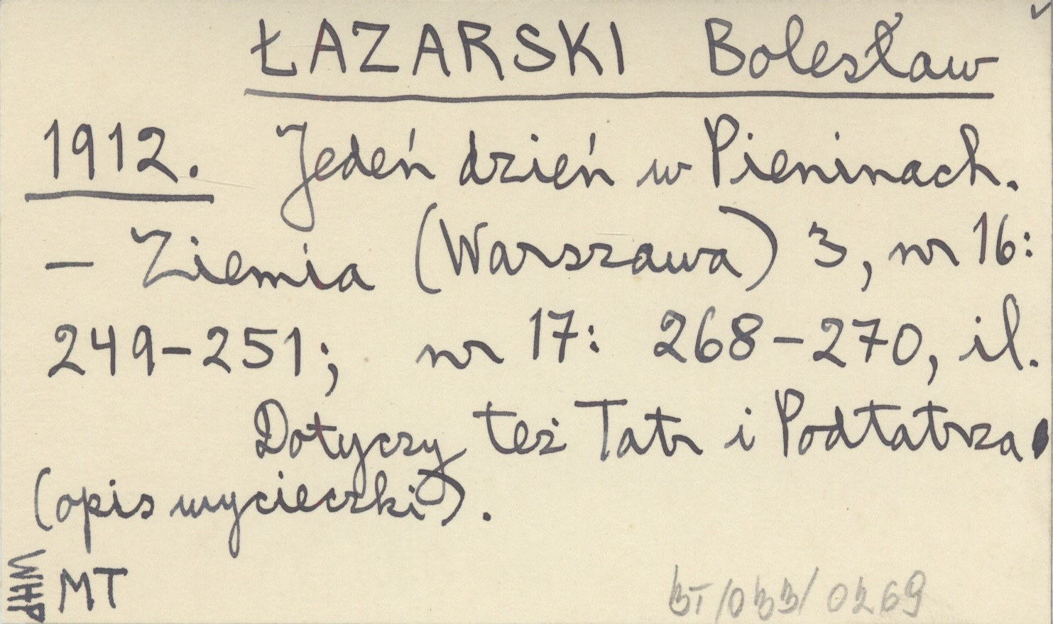 Ziemia (Warszawa) , 3, nr 16: 249-251 ; nr 17: 268-270, il. Dotyczy też Tatr i Podtatrza (opis wycieczki).