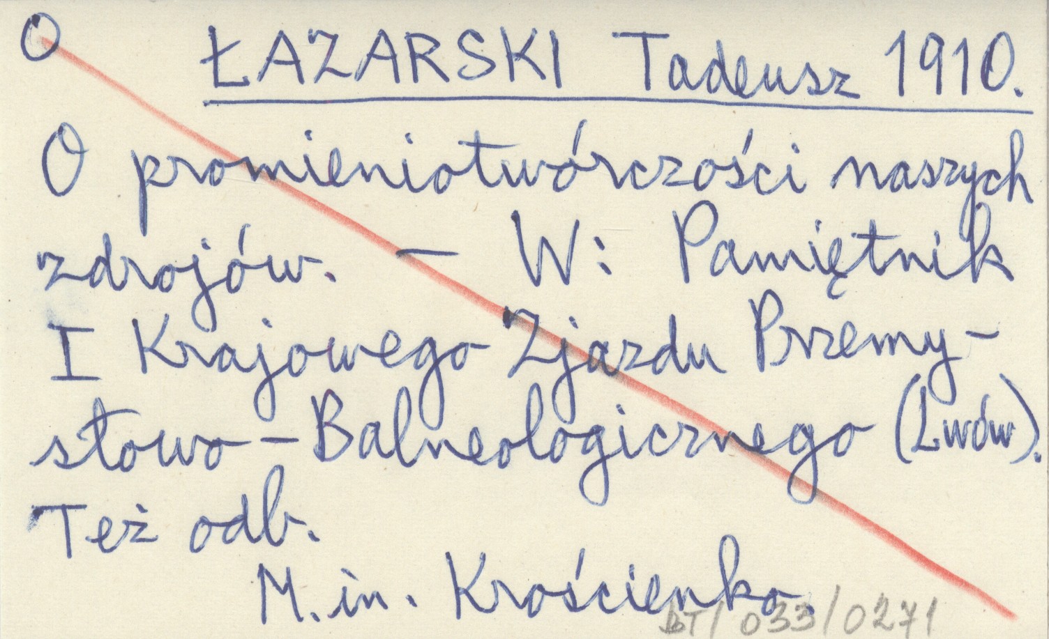 ŁAZARSKI Tadeusz 1910 O promieniotwórczości naszych zdrojów.