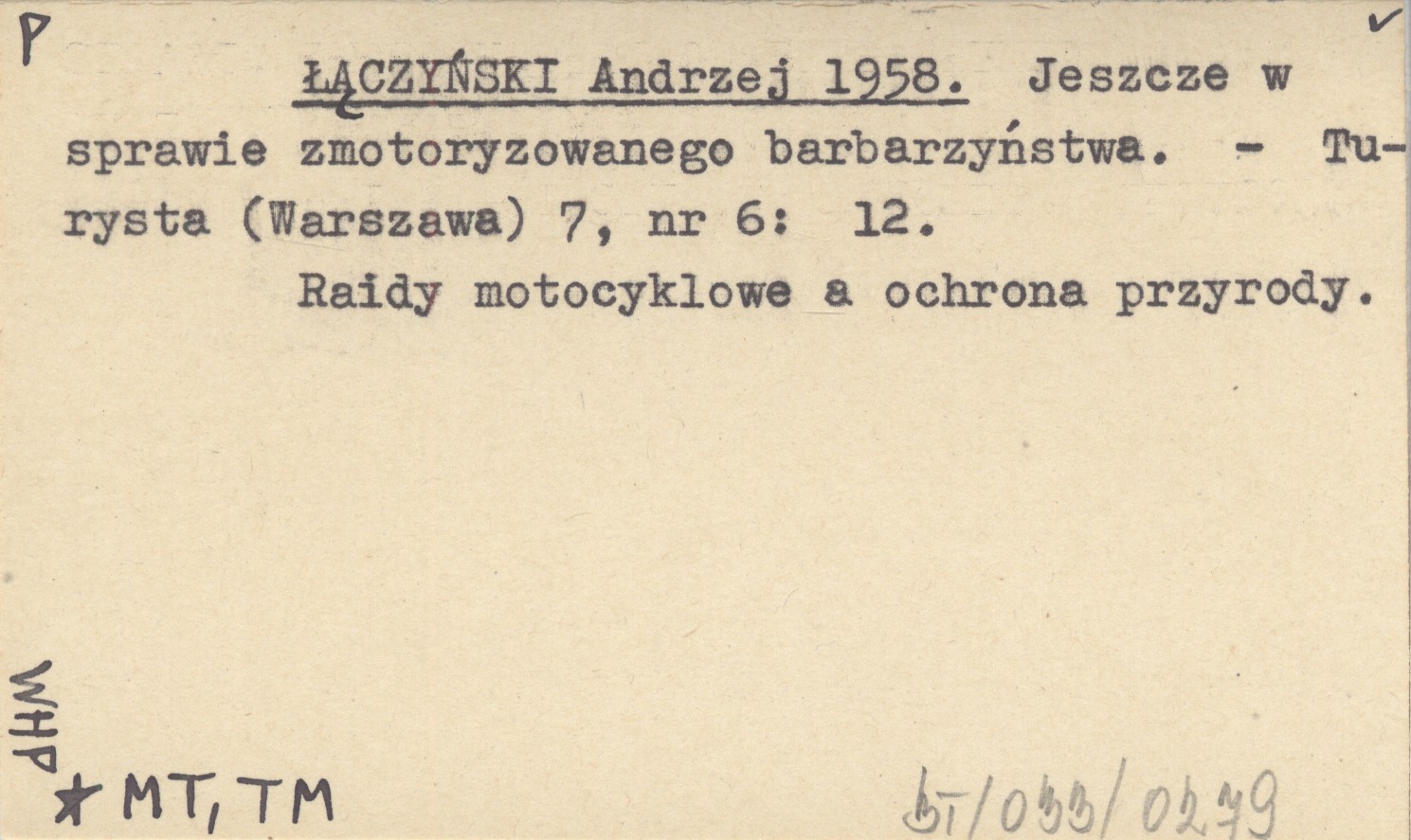 ŁĄCZYŃSKI Andrzej 1958 Jeszcze w sprawie zmotoryzowanego barbarzyństwa.