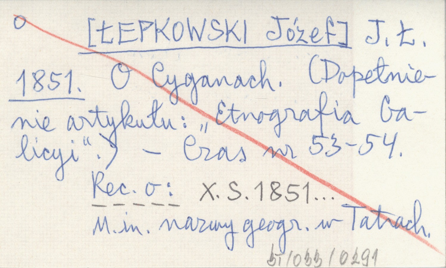 J. Ł. [ŁEPKOWSKI Józef] 1851 O Cyganach. (Dopełnienie artykułu: "Etnografia Galicyi").