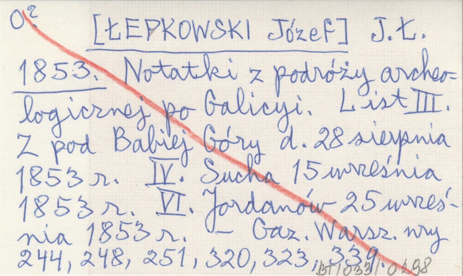 J. Ł. [ŁEPKOWSKI Józef] 1853 Notatki z podróży archeologicznej po Galicyi. List III. Z pod Babiej Góry d. 28 sierpnia 1853 r. IV. Sucha 15 września 1853 r. VI. Jordanów 25 września 1853 r.