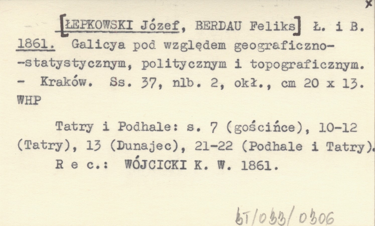 Ł. i B. [ŁEPKOWSKI Józef] [BERDAU, Feliks]. ; 1861 Galicya pod względem geograficzno-statystycznym, politycznym i topograficznym.