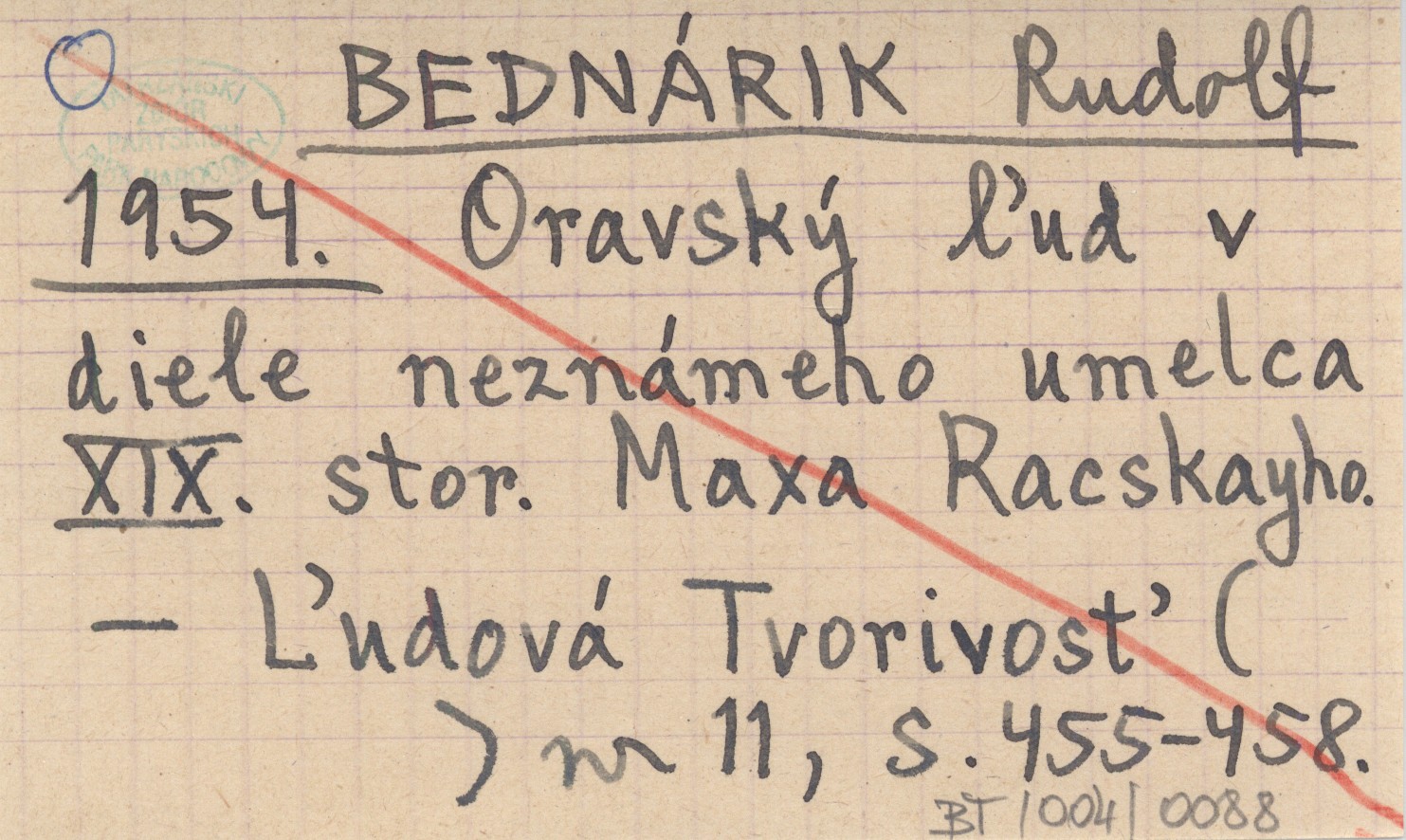 BEDNÁRIK Rudolf 1954 Oravskę ”ud v diele neznámeho umelca XIX. stor. Maxa Racskayho.