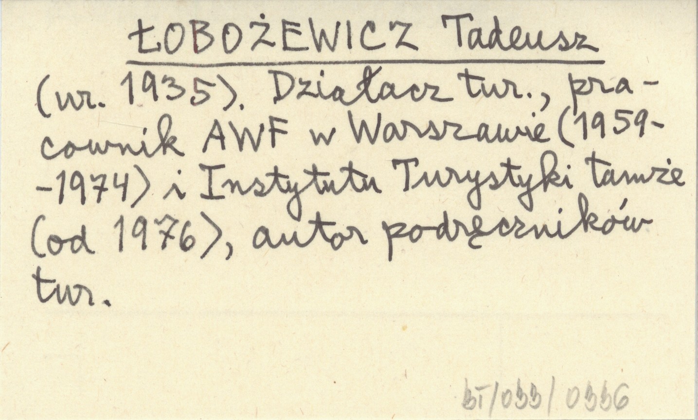(ur. 1935). Działacz tur., pracownik AWF w Warszawie (1959-1974) i Instytut Turystyki tamże (od 1976), autor podręczników tur.
