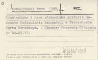 ŁOBARZEWSKA Anna 1983... Odnalezione i nowe stanowiska gnidosza Hacqueta Pedicularis hacquetii w Tatrzańskim Parku Narodowym.
