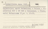ŁOBARZEWSKA Anna 1983... Najmniejszy ogród botaniczny w Polsce - Alpinarium ZOP i ZN PAN w Zakopanem.
