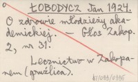 ŁOBODYCZ Jan 1924 O zdrowie młodzieży akademickiej.