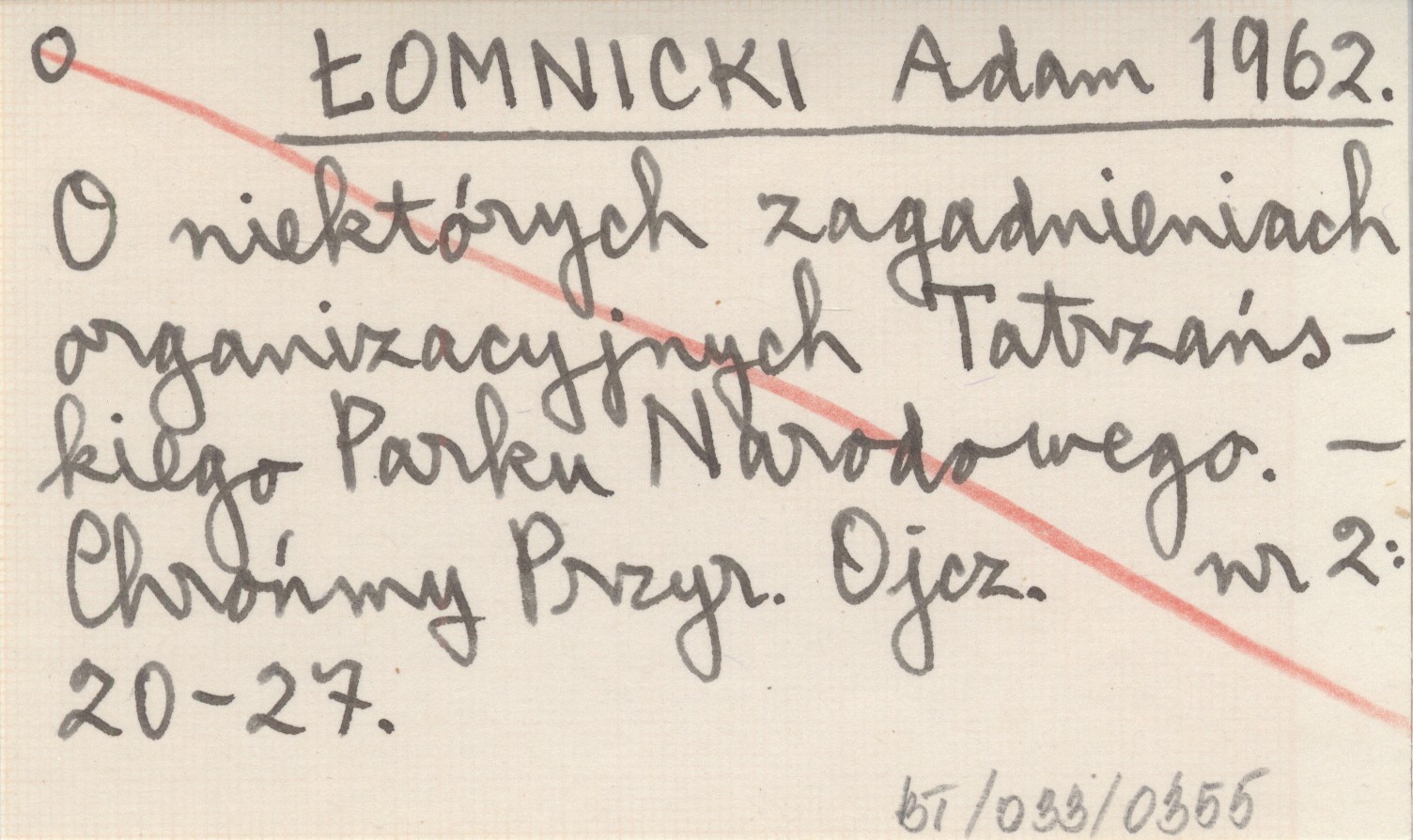 ŁOMNICKI Adam 1962 O niektórych zagadnieniach organizacyjnych Tatrzańskiego Parku Narodowego.