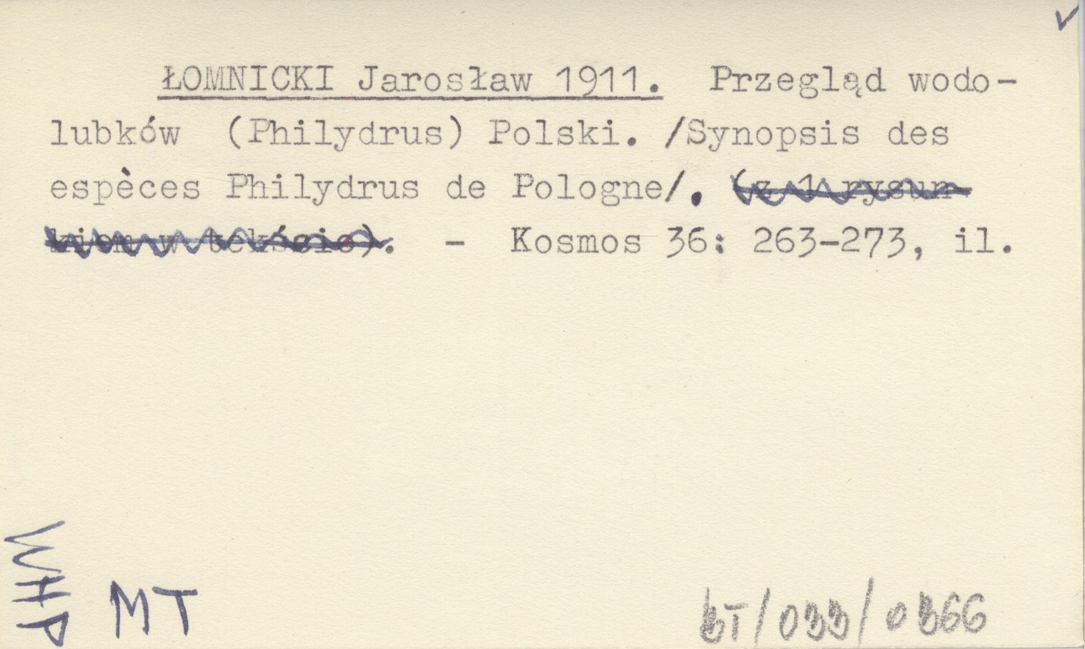 ŁOMNICKI Jarosław 1911 Przegląd wodolubków (Philydrus) Polski. (Synopsis des espéces Philydrus de Pologne).