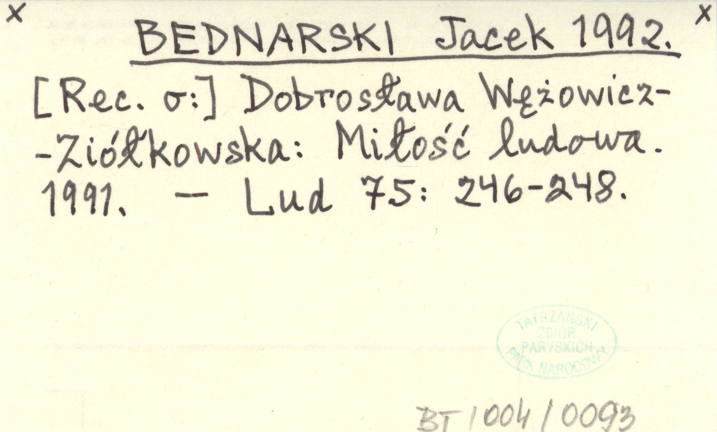 BEDNARSKI Jacek 1992 Dobrosława Wężowicz-Ziółkowska: Miłość ludowa. 1991.