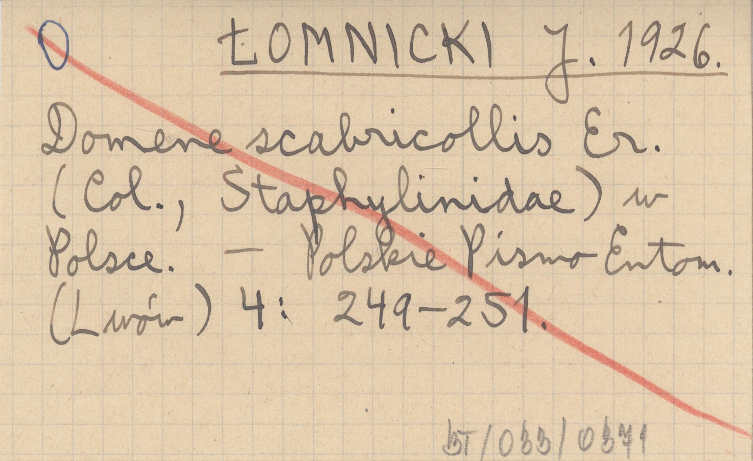 ŁOMNICKI J. 1926 Domene scabricollis Er. (Col., Staphylinidae) w Polsce.