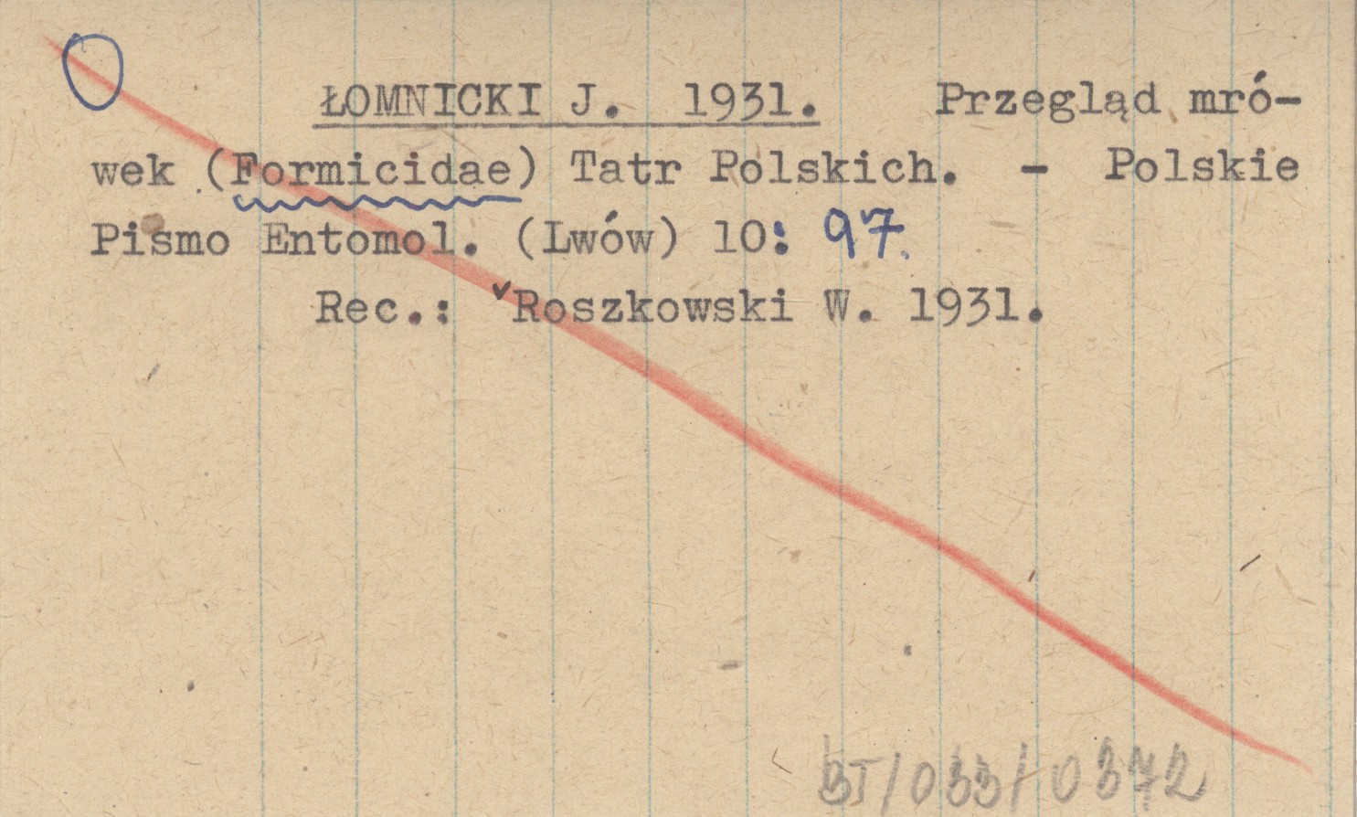 ŁOMNICKI J. 1931 Przegląd mrówek (Formicidae) Tatr Polskich.