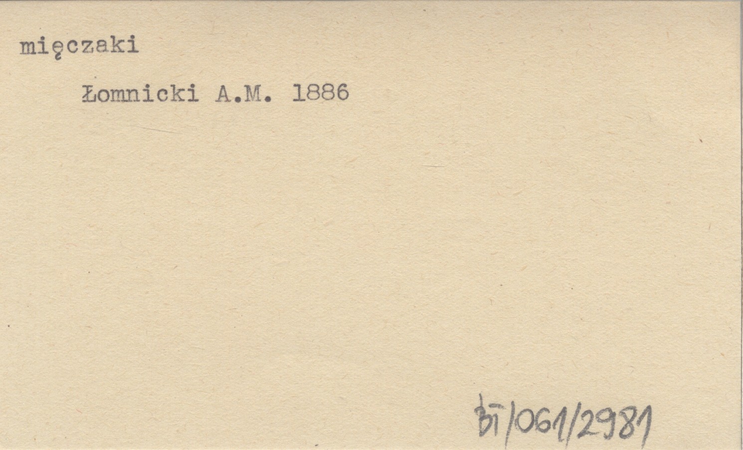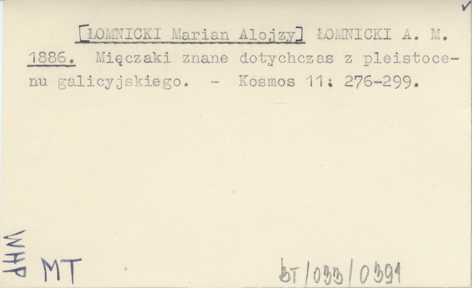 ŁOMNICKI A. M. [ŁOMNICKI Marian Alojzy] 1886 Mięczaki znane dotychczas z pleistocenu galicyjskiego.