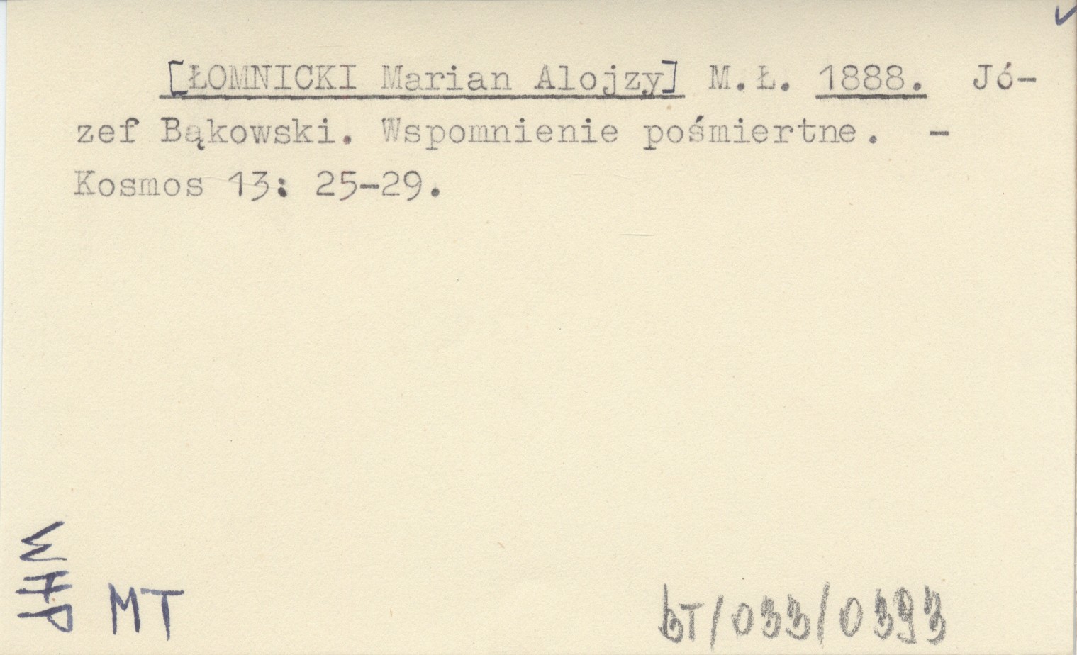M. Ł. [ŁOMNICKI Marian Alojzy] 1888 Józef Bąkowski. Wspomnienie pośmiertne.
