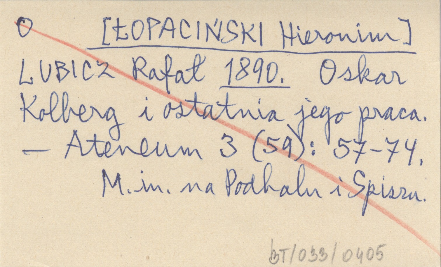 LUBICZ Rafał [ŁOPACIŃSKI Hieronim] 1890 Oskar Kolberg i ostatnia jego praca.