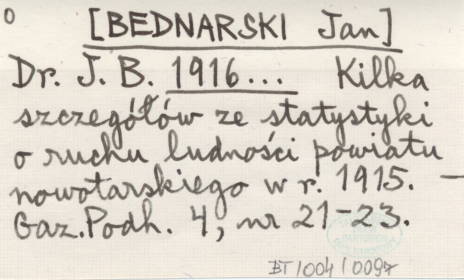 Dr. J. B. [BEDNARSKI Jan] 1916... Kilka szczegółów ze statystyki o ruchu ludności powiatu nowotarskiego w r. 1915.
