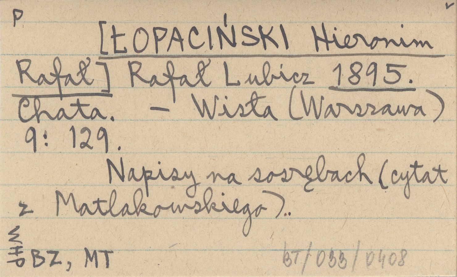 Wisła (Warszawa) , 9: 129. Napisy na sosrębach (cytat z Matlakowskiego).