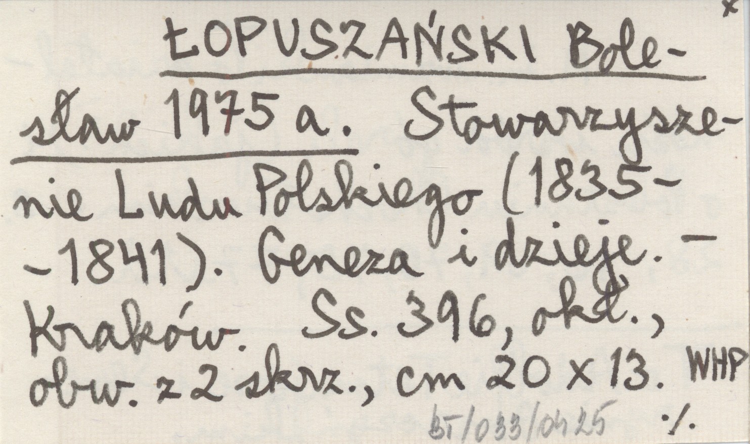 ŁOPUSZAŃSKI Bolesław 1975 a Stowarzyszenie Ludu Polskiego (1835-1841). Geneza i dzieje.