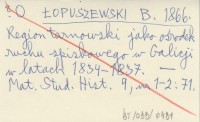 ŁOPUSZEWSKI B. 1866 Region tarnowski jako ośrodek ruchu spiskowego w Galicji w latach 1834-1837.