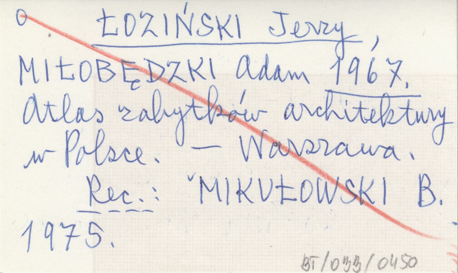 ŁOZIŃSKI Jerzy MIŁOBĘDZKI, Adam. ; 1967 Atlas zabytków architektury w Polsce.
