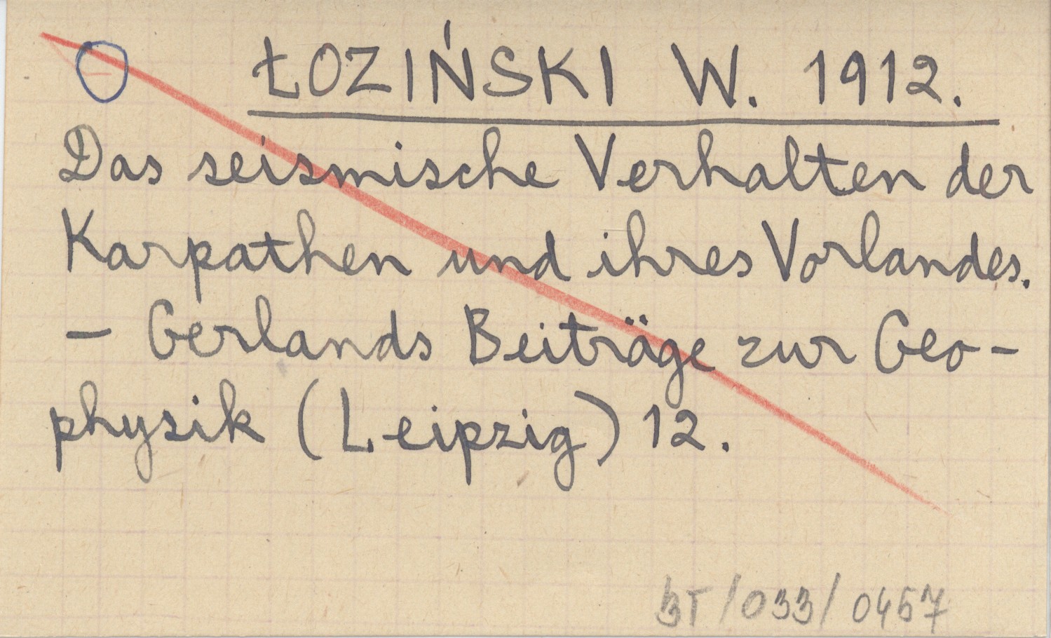 ŁOZIŃSKI W. 1912 Das seismische Verhalten der Karpathen und ihres Vorlandes.