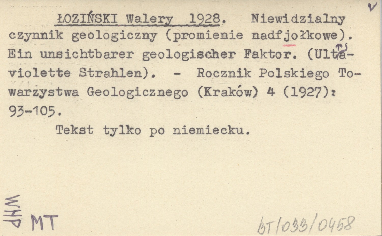 Rocznik Polskiego Towarzystwa Geologicznego (Kraków) , 4 (1927): 93-105. Tekst tylko po niemiecku.