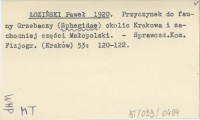 Przyczynek do fauny Grzebaczy (Sphegidae) okolic Krakowa i zachodniej części Małopolski.