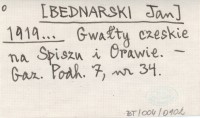 [BEDNARSKI Jan] 1919... Gwałty czeskie na Spiszu i Orawie.