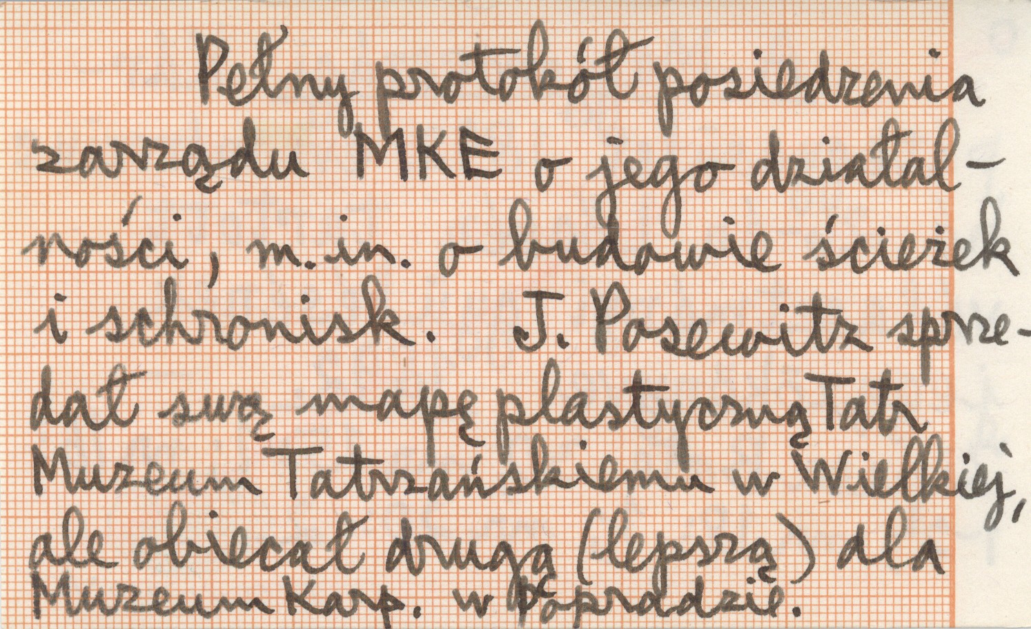 Zipser Bote, 30, nr 15: 1 ; nr 16: 1-2 ; nr 18: 1 ; nr 20: 2. Pełny protokół posiedzenia zarz±du MKE o jego działalno¶ci, m. in. o budowie ¶cieżek i schronisk. I. Posewitz sprzedał sw± mapę plastyczn± Tatr Muzeum Tatrzańskiemu w Wielkiej, ale obiecał drug± (lepsz±) dla Muzeum Karp. w Popradzie.