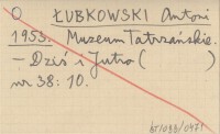 ŁUBKOWSKI Antoni 1953 Muzeum Tatrzańskie.