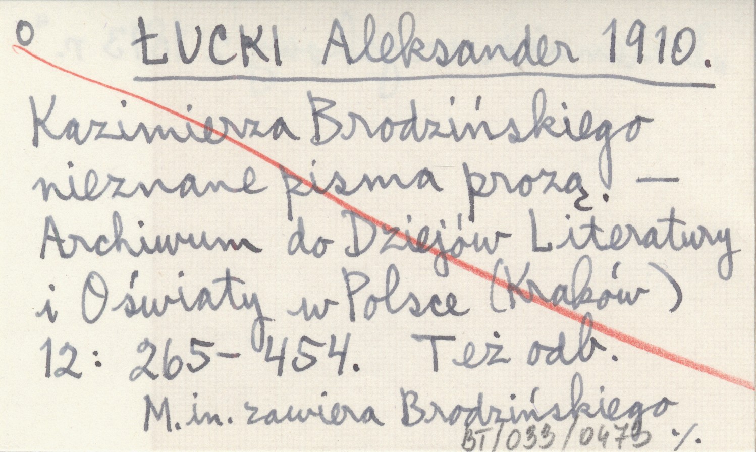 ŁUCKI Aleksander 1910 Kazimierza Brodzińskiego nieznane pisma prozą.