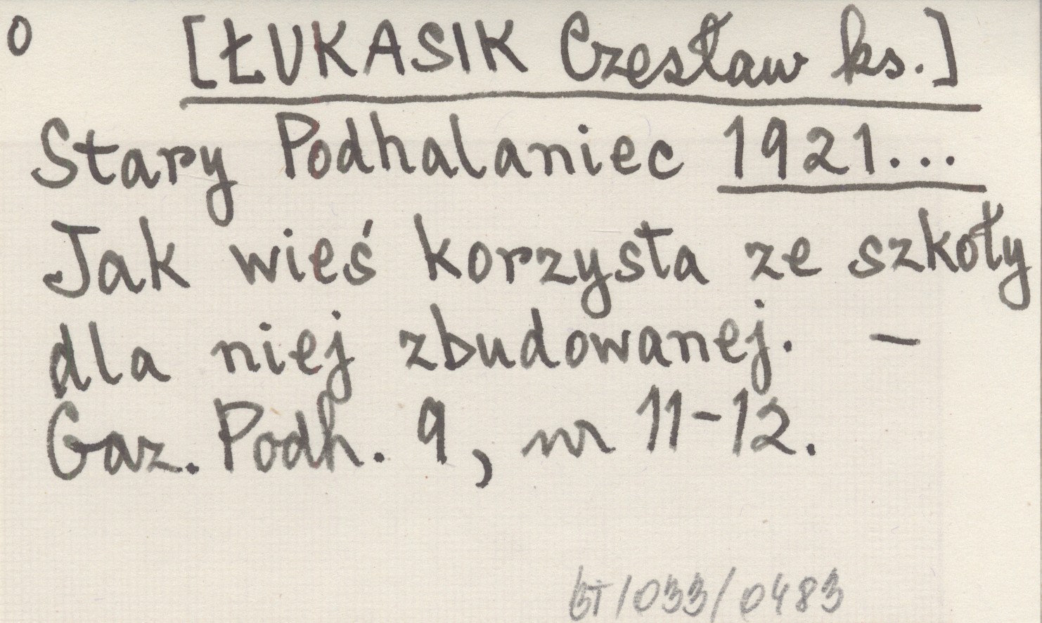 Stary Podhalaniec [ŁUKASIK Czesław ks.] 1921... Jak wieś korzysta ze szkoły dla niej zbudowanej.
