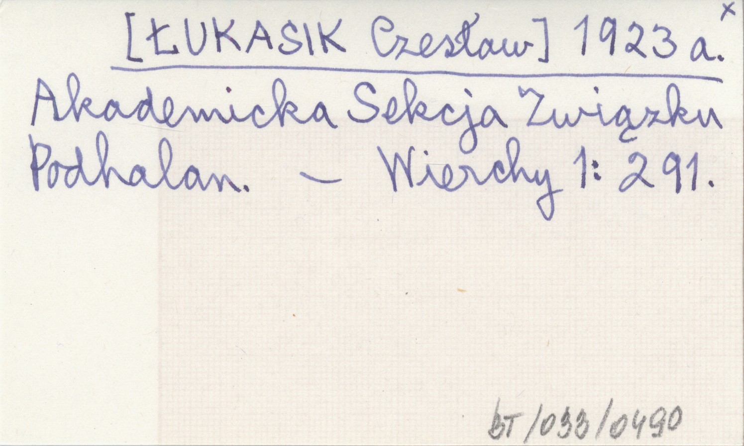 [ŁUKASIK Czesław] 1923 a Akademicka Sekcja Związku Podhalan.